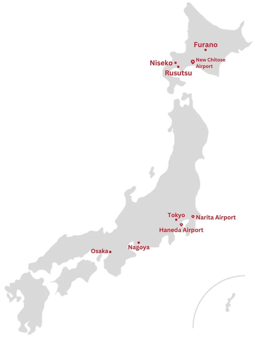 Once in Hokkaido, multiple bus lines link the airport with major ski resorts including Niseko, Rusutsu and Furano. Alternatively, private transfers is an excellent option for a quick and comfortable journey. Both bus and private transfer bookings can be arranged as part of your Japan ski package together with your accommodation – get in touch with our team to start the ball rolling!