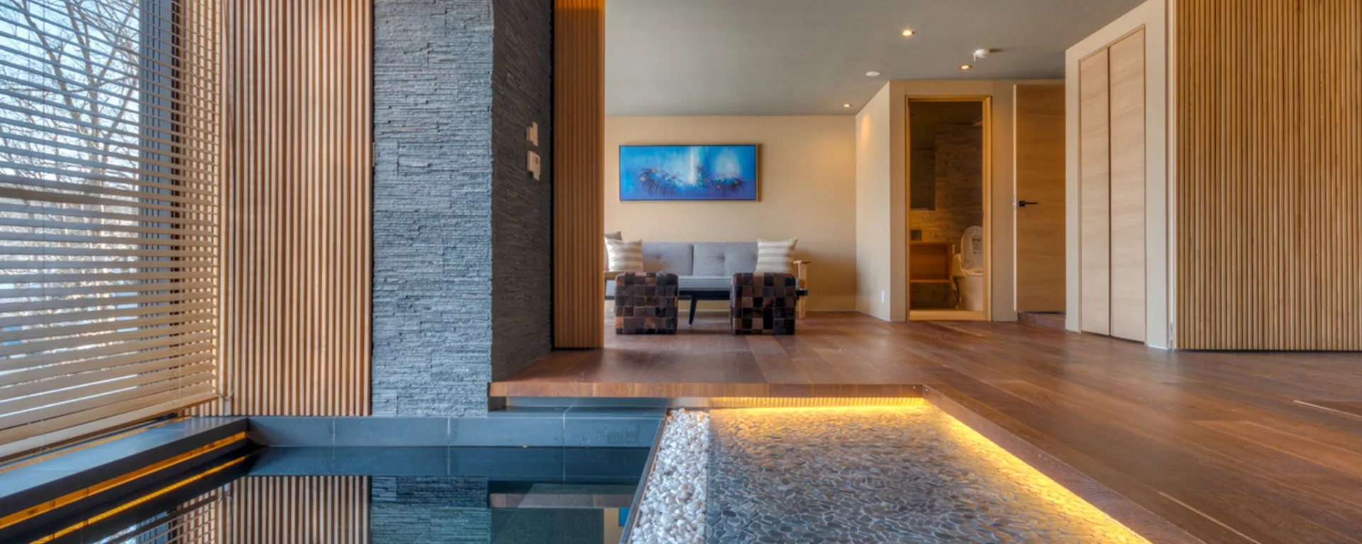 Sansui Niseko is another exciting addition to Hirafu Village in Winter 22-23, combining natural materials and luxury living. Its penthouses come with private onsens, allowing guests to unwind in the therapeutic waters after a day of adventure. For other guests, a communal onsen is available onsite as well as private family baths.