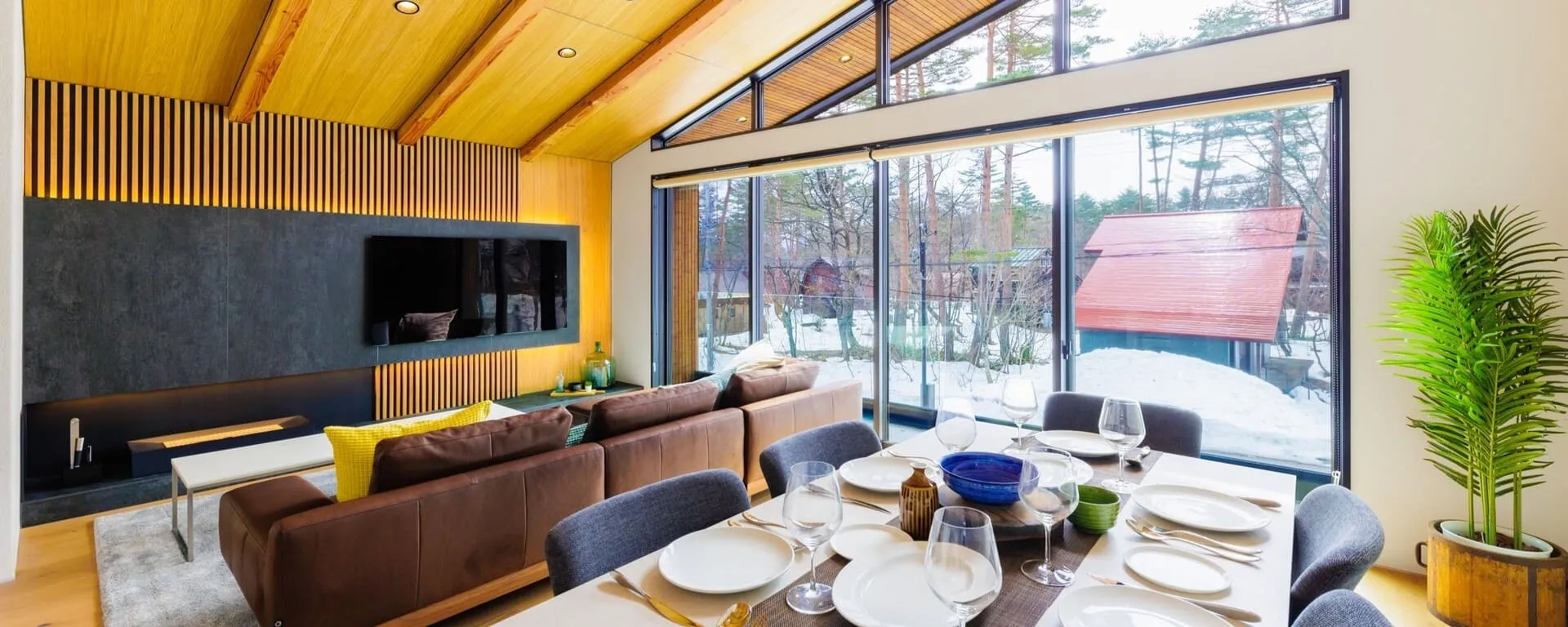 Tucked away in a tranquil part of the fantastic Echoland Village area, Credence Chalets Hakuba are a brand-new pair of luxury chalets offering a quiet and luxurious retreat only steps from the convenience of the village area. Offering both warmth and charm, Credence Chalets Hakuba will remind guests of traditional ski chalets, with cedar interiors, high, vaulted ceilings, and warm furnishings. These 3 bedroom Echoland chalets blend both classic and modern touches seamlessly, with endless light spilling in from the floor-to-ceiling windows, contemporary bathrooms, and stone finishes.