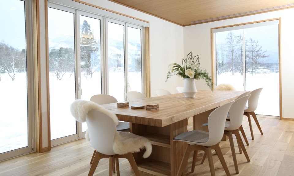 Nestled in the tranquil embrace of the Japanese Alps, Hida Peaks Hakuba stands as a testament to refined alpine living. This luxury 5 bedroom retreat, exuding a chic Nordic charm, rests just to the south-east of the renowned Happo One ski resort, capturing the very essence of premium mountain living. Positioned in a secluded enclave, this stylish chalet affords uninterrupted vistas of the awe-inspiring landscape and encompassing mountains. However, Hida Peaks conveniently remains within easy reach of both Happo One and Echoland, two bustling hubs of activity that offer an array of amenities and entertainment options. The nearest ski lifts are a mere 4 minute drive away, ensuring quick access to Hakuba’s pristine slopes. Sprawling across its generous floorplan, the chalet boasts spacious and luxurious living spaces. As you step inside Hida Peaks Chalet, a neutral colour theme creates an ambiance of serenity, accentuating the chalet’s modern and sophisticated décor. The heart of the home is a stunning, state-of-the-art modern kitchen in glossy white, complete with an inviting breakfast bar and top-of-the-range appliances. The kitchen seamlessly connects to a spacious dining area featuring a locally crafted wooden table surrounded by floor-to-ceiling windows, ensuring you feel at one with the natural world outside. Opening onto a welcoming living area featuring plush sofas and a cosy modern fireplace, this space is ideal for both intimate family gatherings and entertaining friends. The large bedrooms, which can be configured as twin or king, ensure that every guest enjoys the utmost comfort. For those seeking an authentic Japanese experience, an additional tatami room awaits, accommodating two guests on plush futons. A generous four bathrooms, including two ensuite, provide ample privacy. At the end of the day relax and enjoy a soak in one of the large bath tubs while gazing upon the breathtaking snowy landscape and majestic mountains beyond.